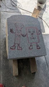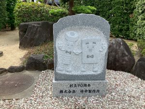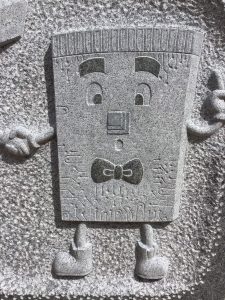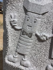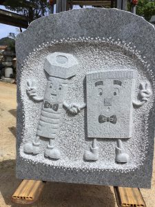 マスコットのレリーフ彫刻は、もちろん庵治石製。